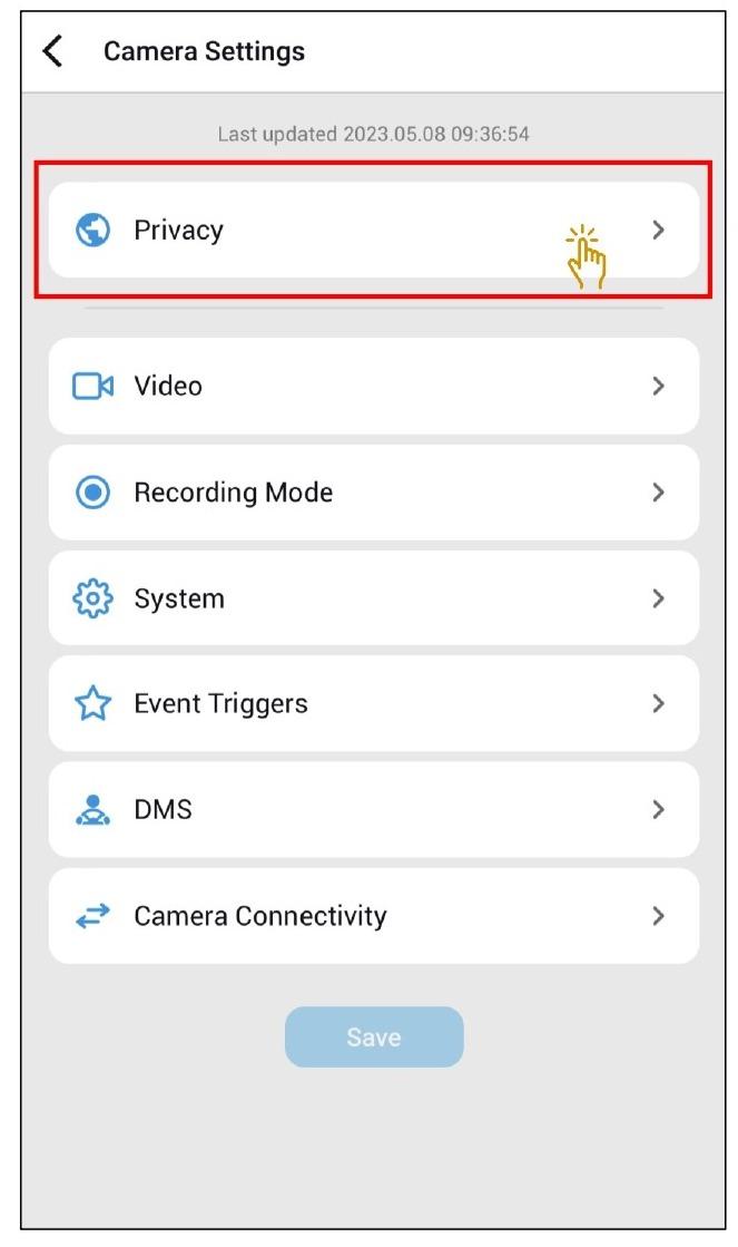 Camera Settings > DMS > DMS Camera Recording in Parking Mode