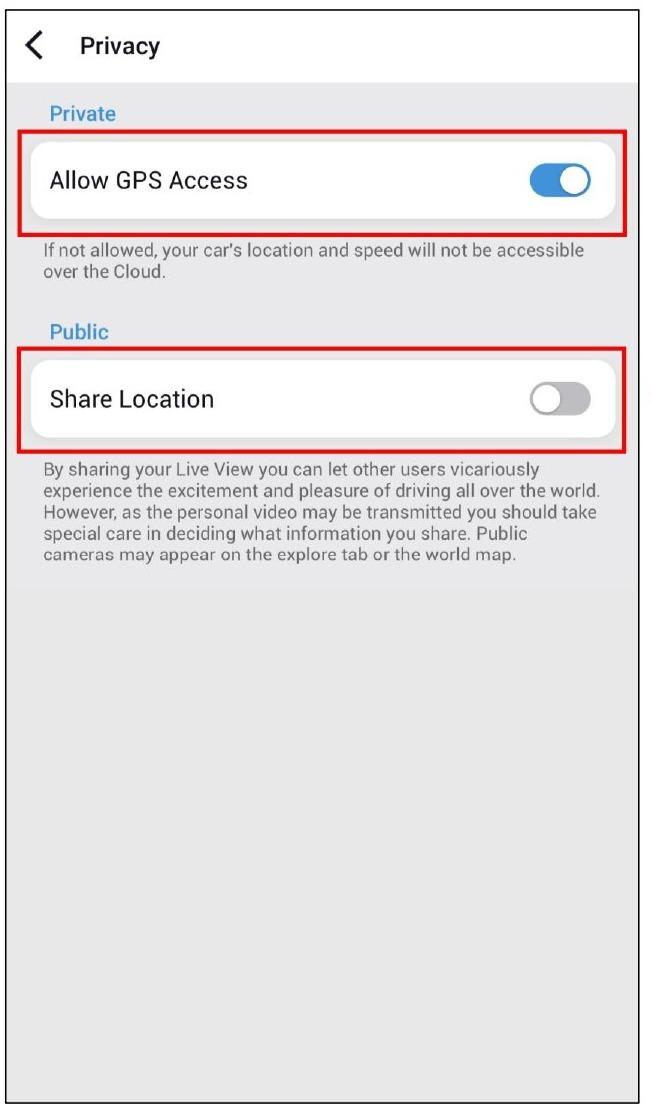 GPS location recording is able to protect your privacy. GPS location recording is on by default. When it is off, the GPS location is not recorded or sent to the cloud server. Therefore, your privacy will be protected. Turning it off will not disable some convenient features such as time correction, speed display, and other speed-related events. Find the features that will be affected by turning it off.