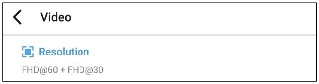- Resolution and frame rate is fixed at “FHD@60 + FHD@30”. This means the front camera records Full HD video at 60 frames per second, and the rear camera records Full HD video at 30 frames per second.