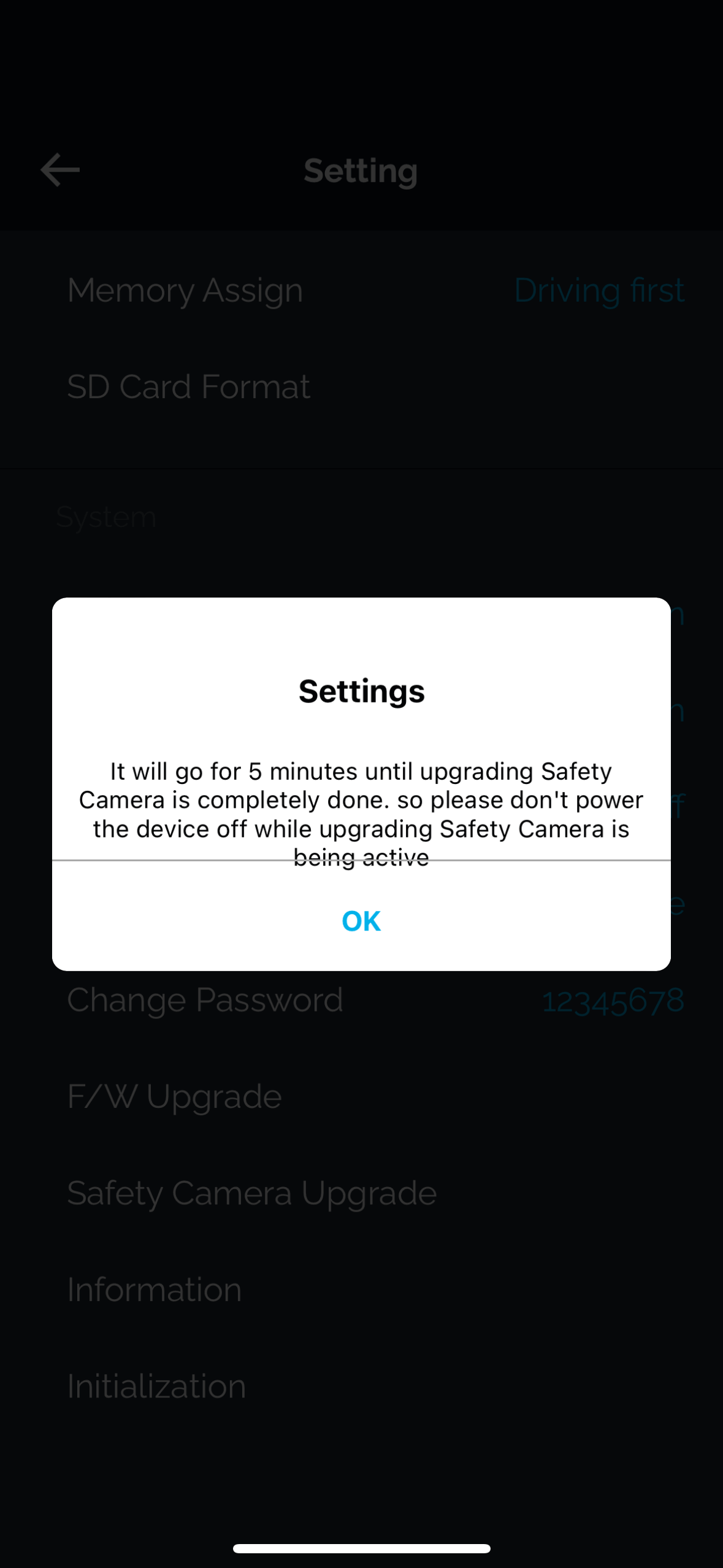 - Tap on "OK" and make sure don't power OFF the dashcam while upgrading.