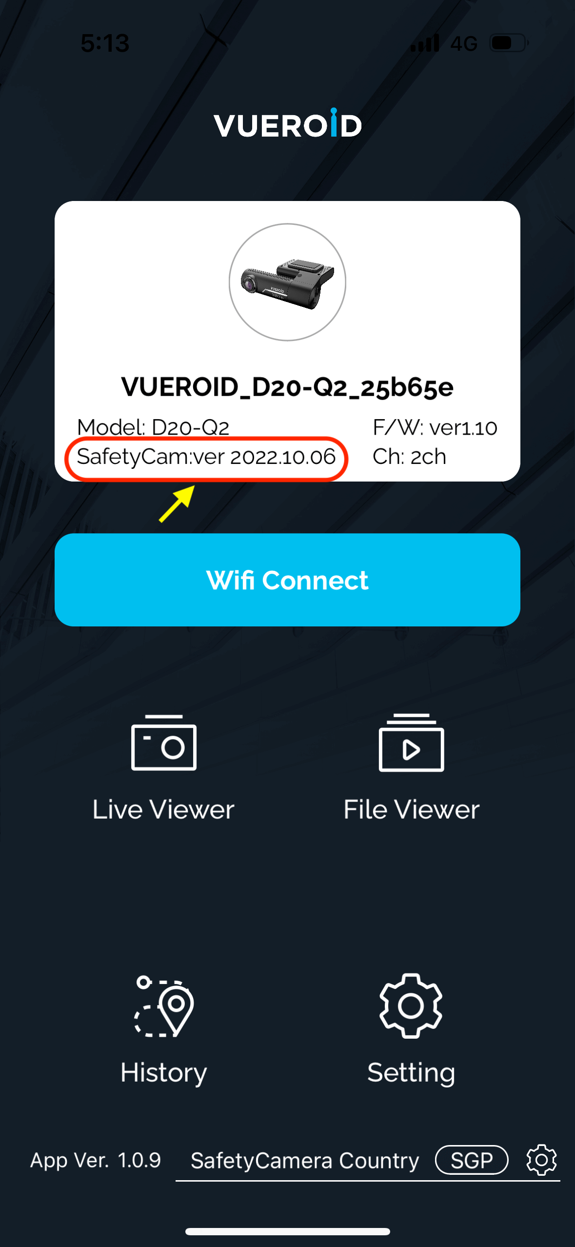 - Upon upgrade completion, connect to the dashcam and confirm that the latest version of database appear here.