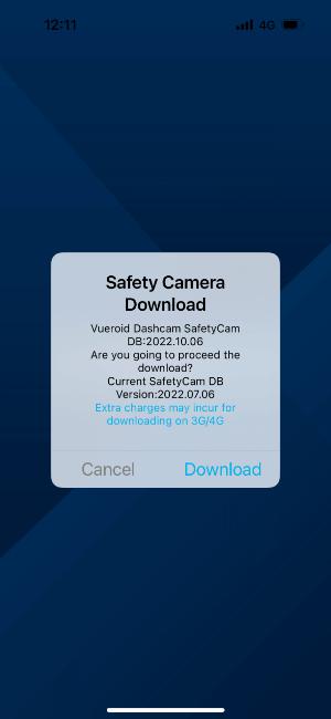 The Safety Camera database is available for download from time to time for improved accuracy and performance. You can update the database to the dashcam using the Vueroid App or PC.