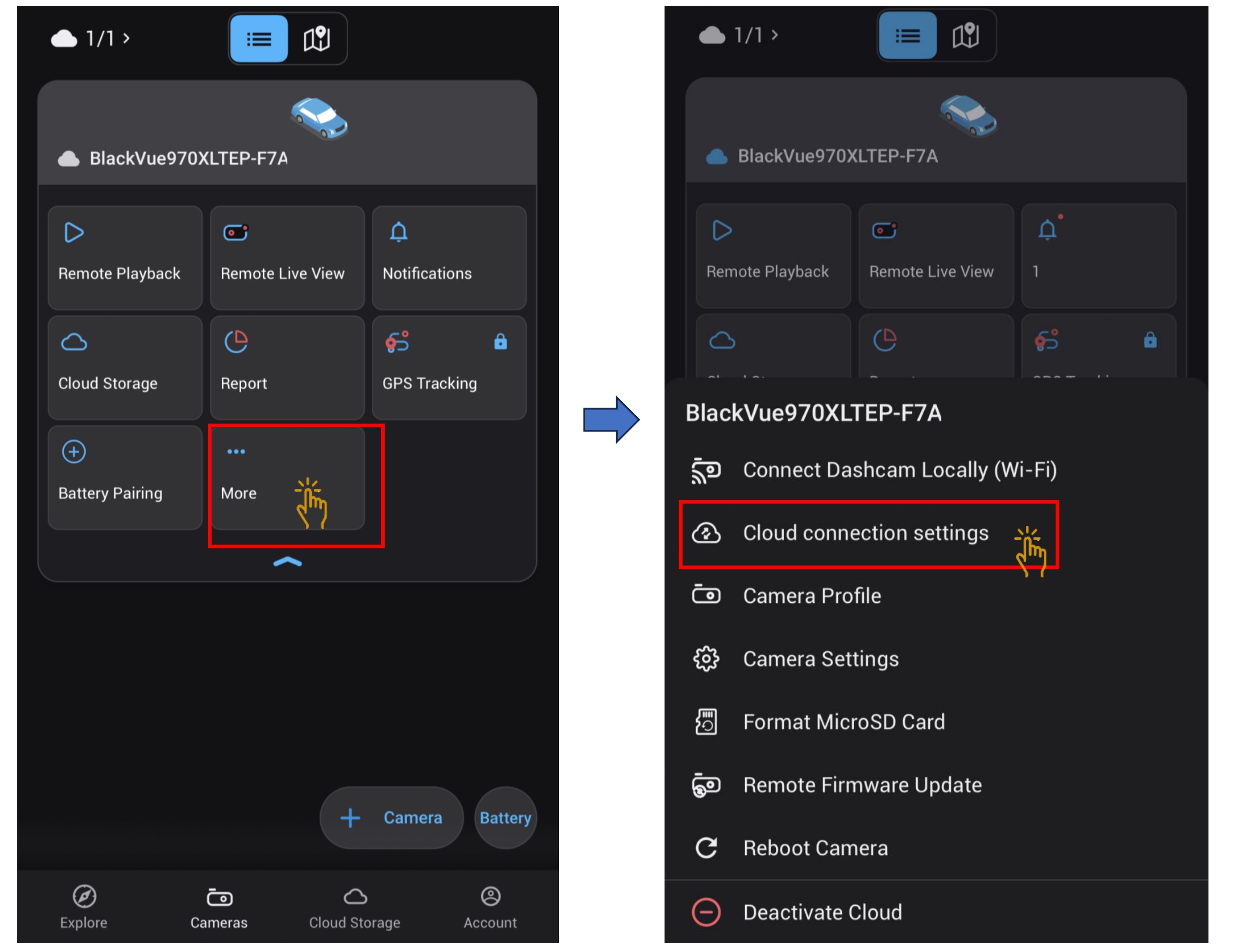 - Click on the "More" and the submenu will be shown and choose "Cloud connection settings".