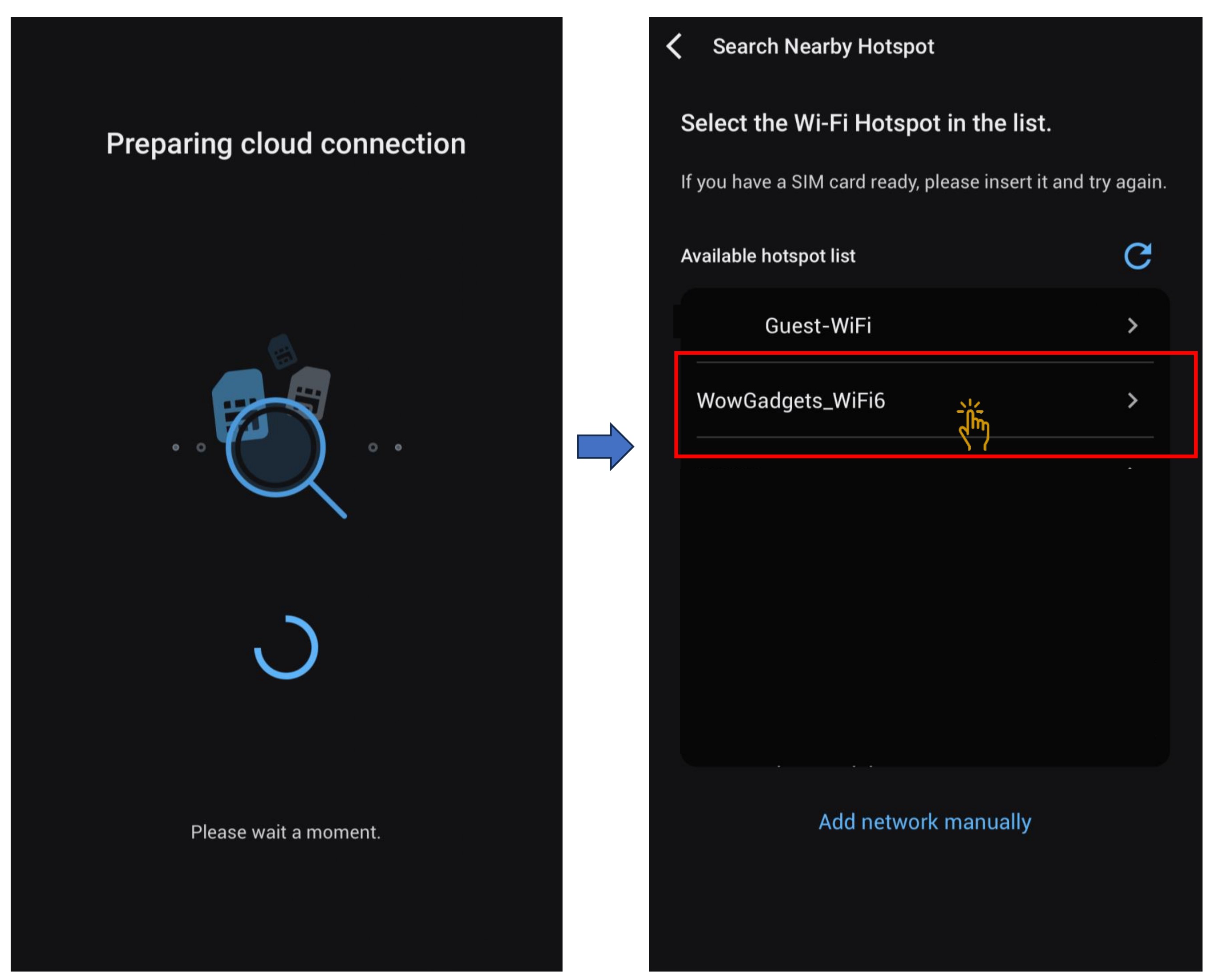 - Choose the Wi-Fi hotspot network that you want to setup.
