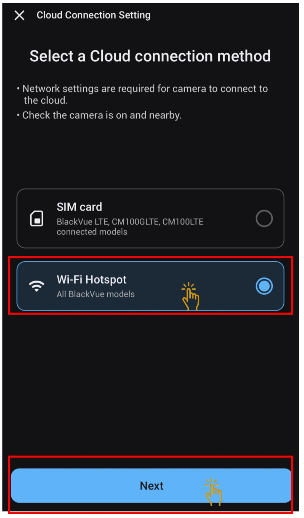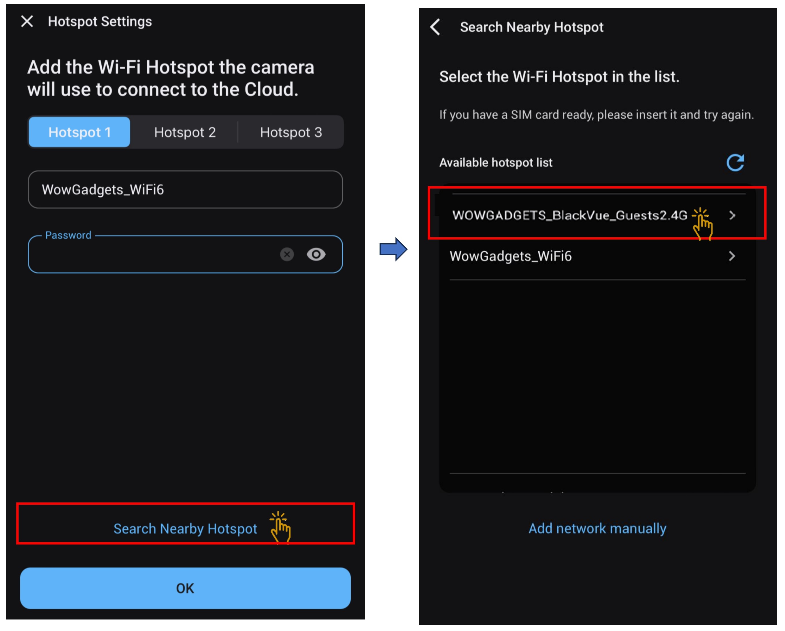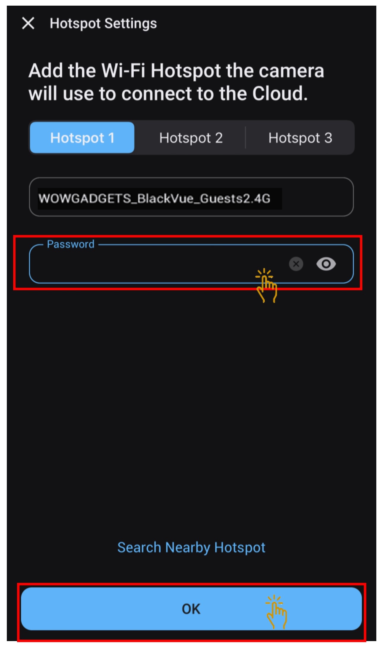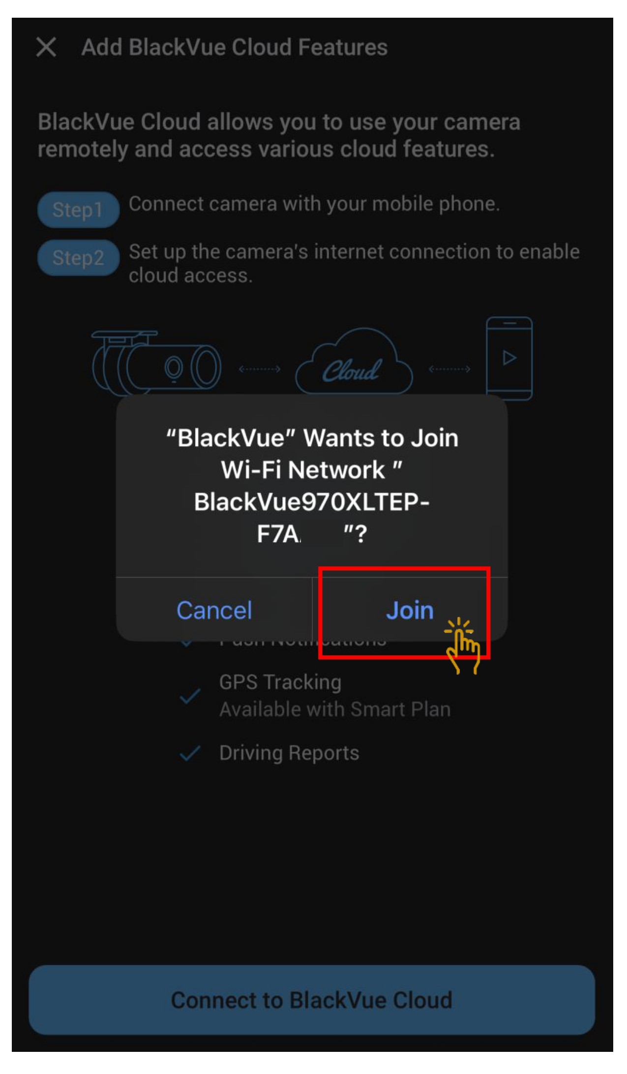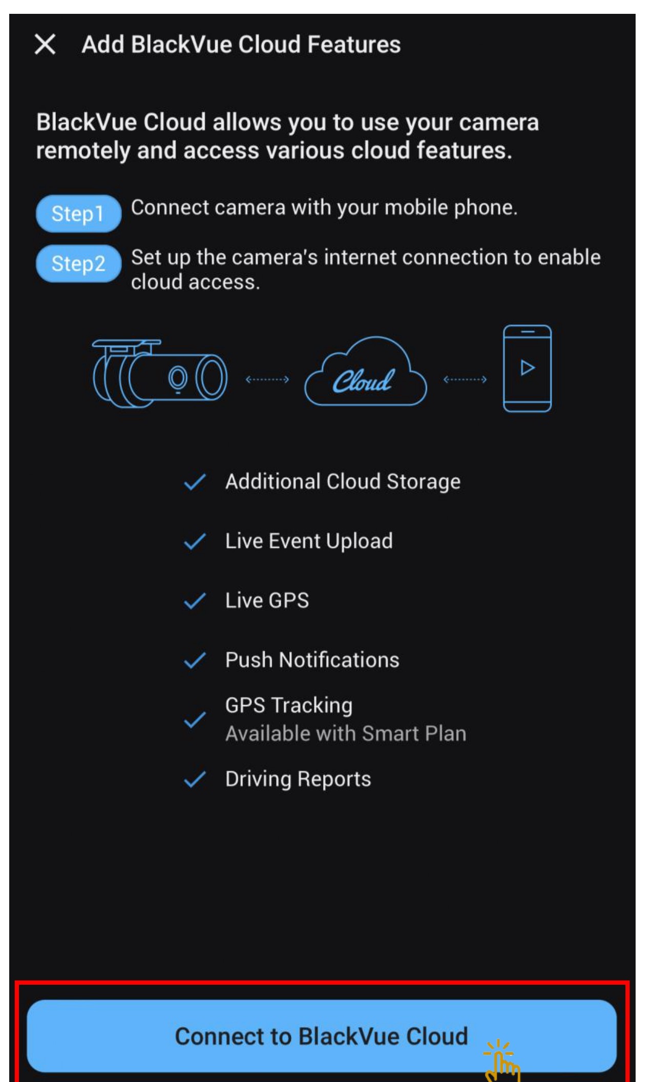 - Click on the "Add BlackVue Cloud Features" where you want to setup Hotspot connection.