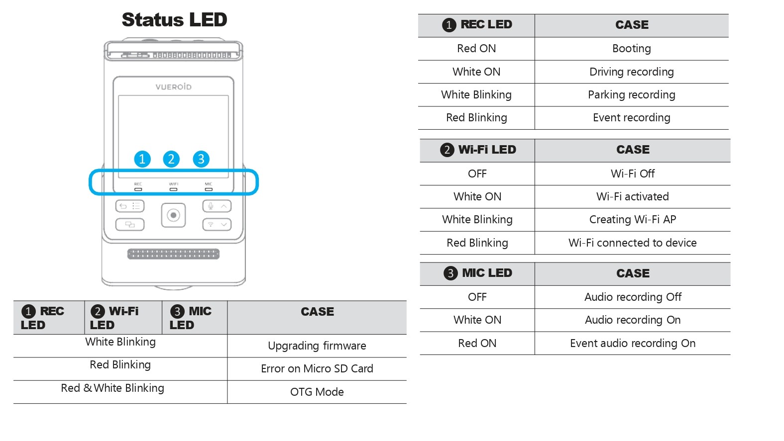 ※"Status LED" and press Manual Record / Enter button to turn On/Off.