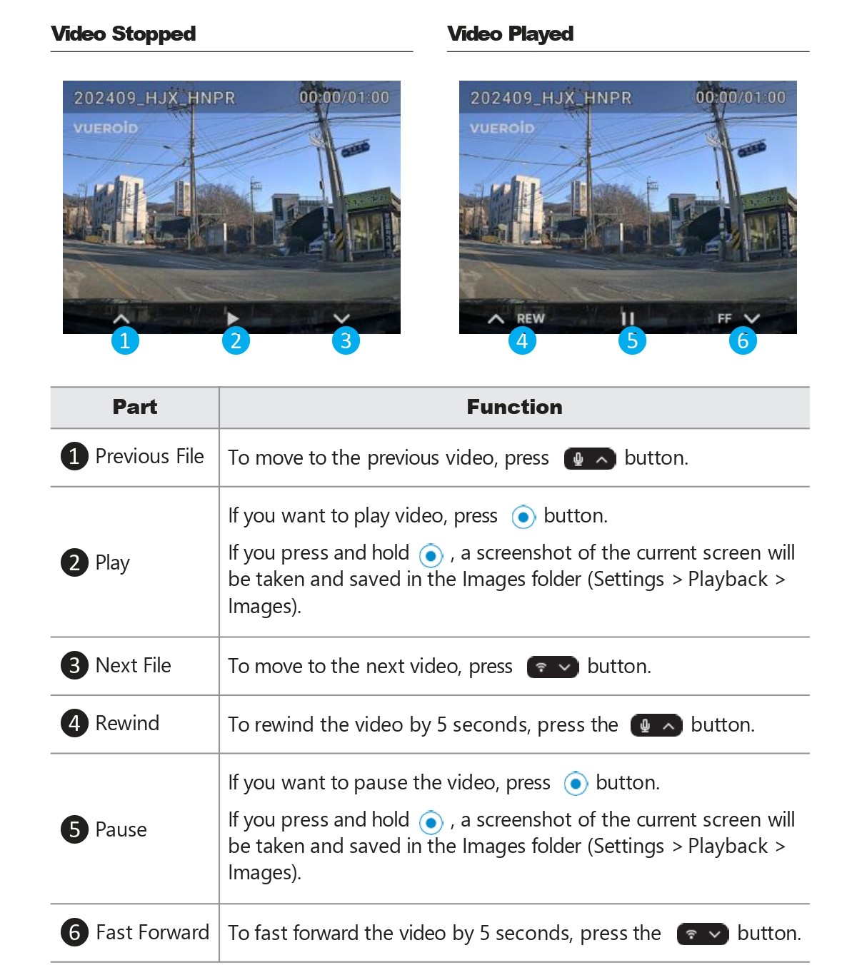 ※Watermark. The video saved via VUEROID Dashcam will display VUEROID logo in the upper left corner.