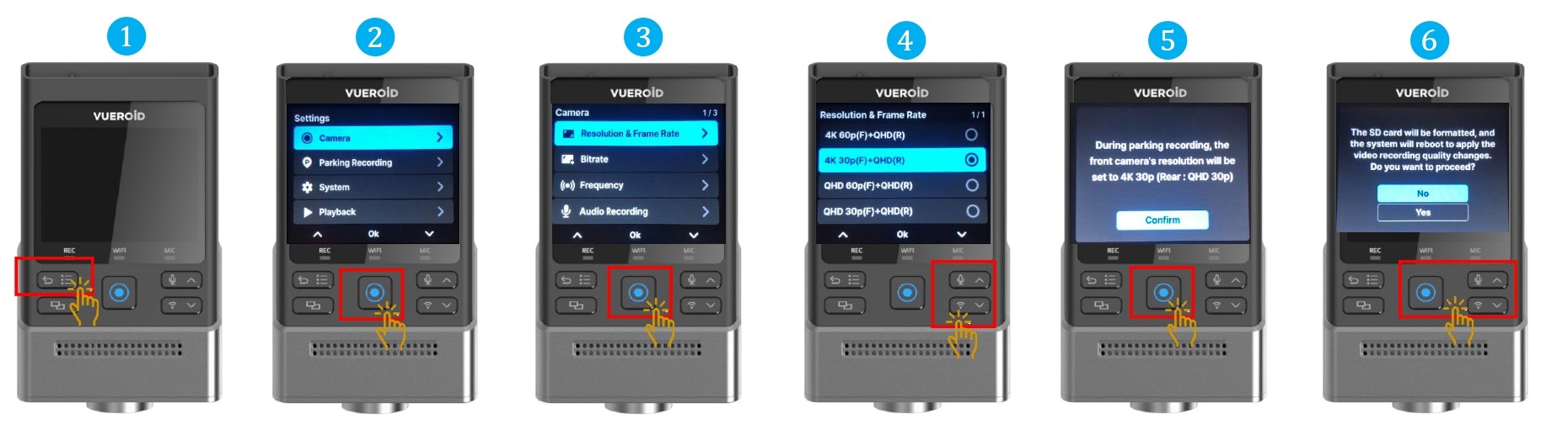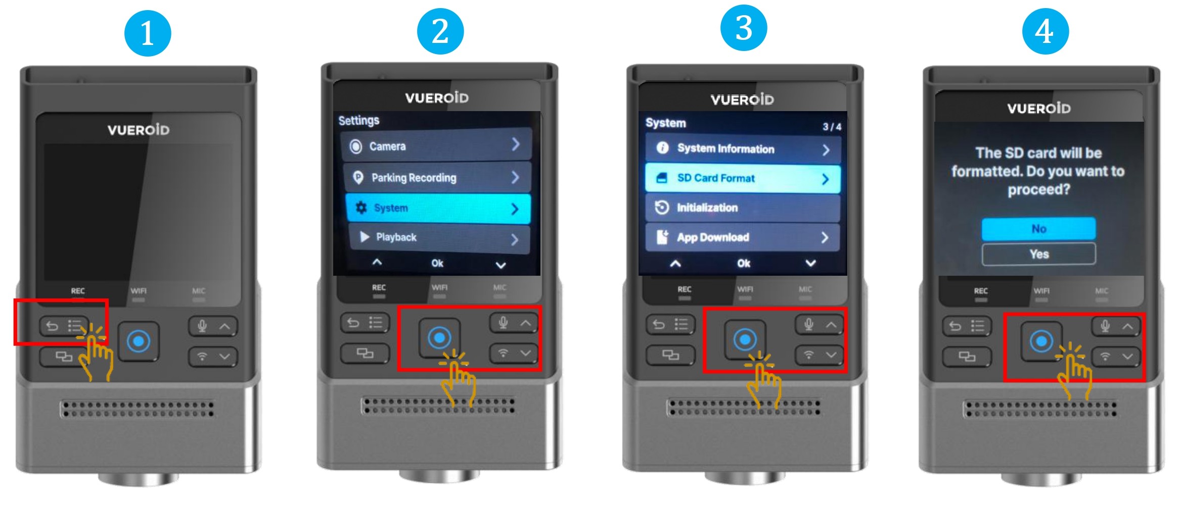 - Choose "Yes", to format the SD card. All videos will be erased after formatting.