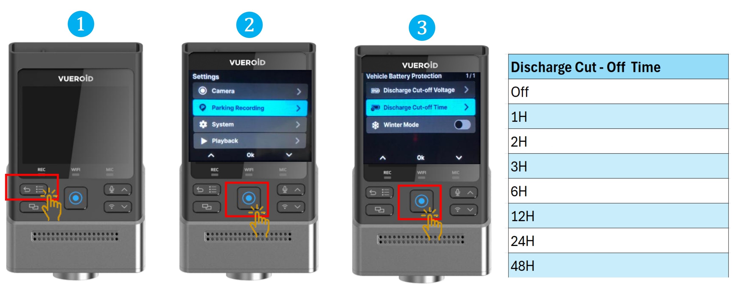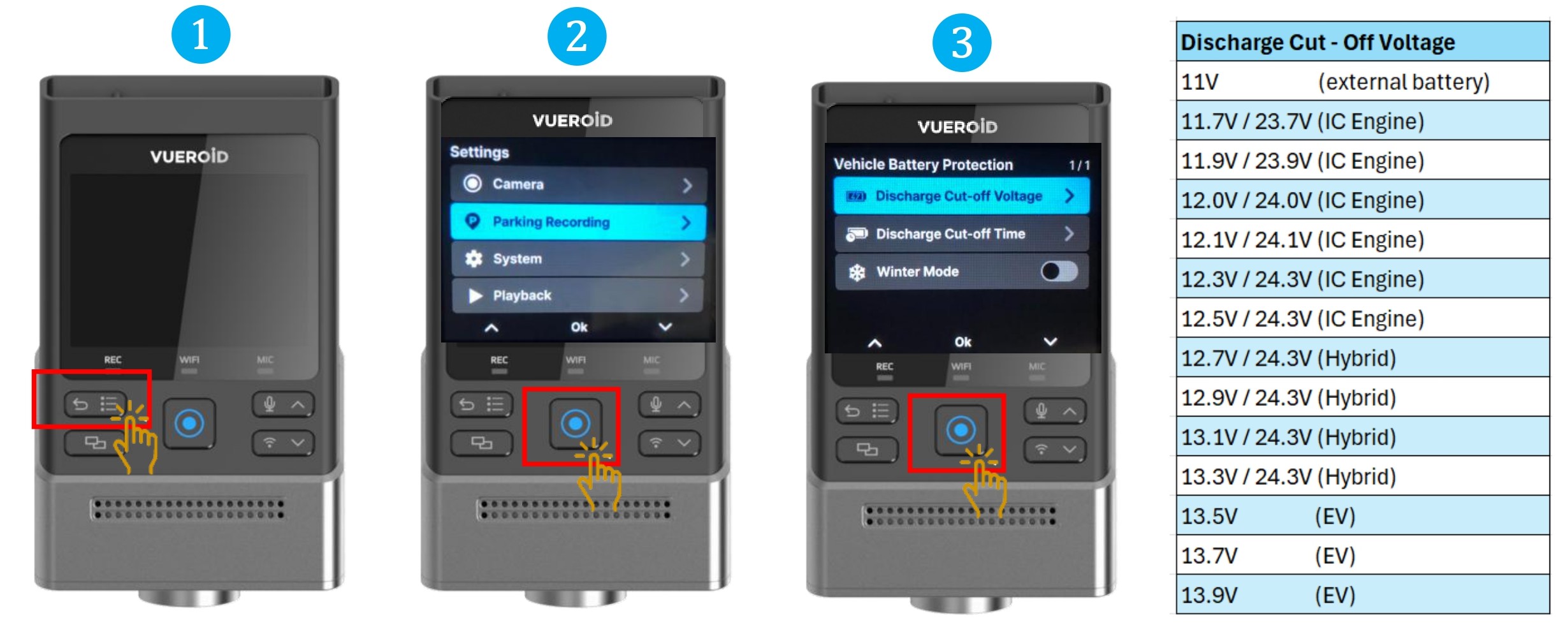 - 7.2.2.2 Setting - Parking Recording - Vehicle Battery Protection