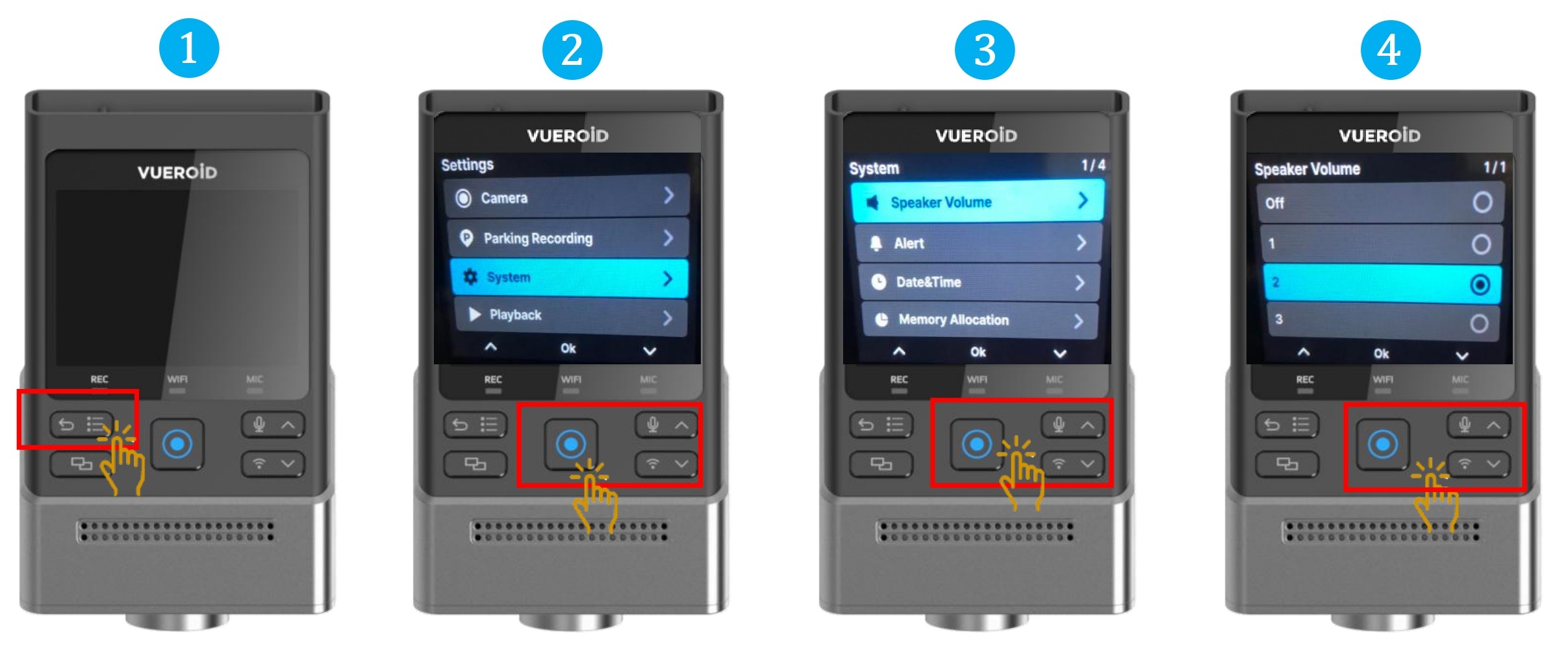- Choose "Speaker Volume" and press Manual Record / Enter button.