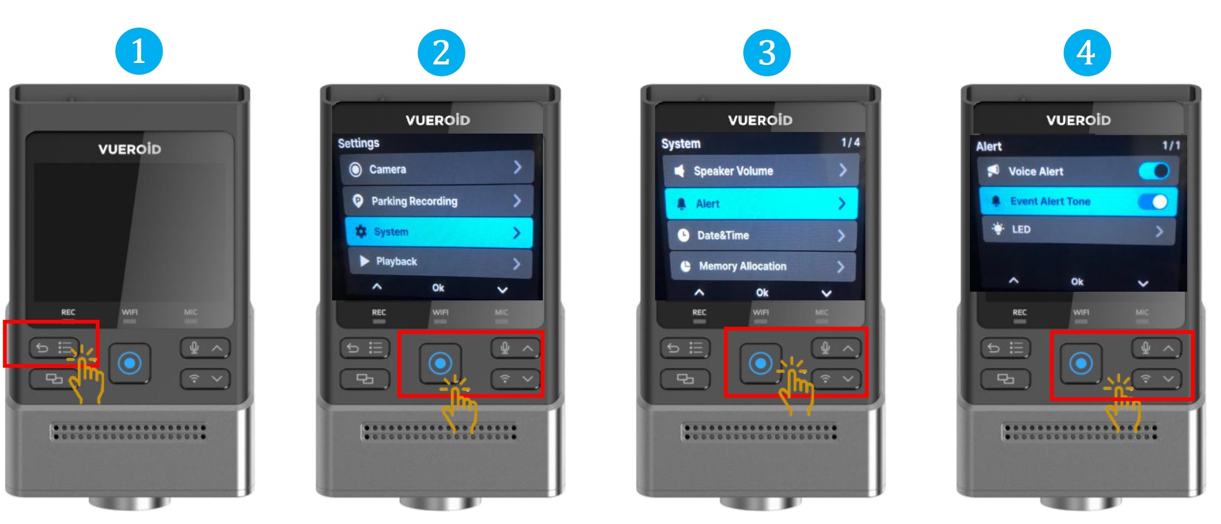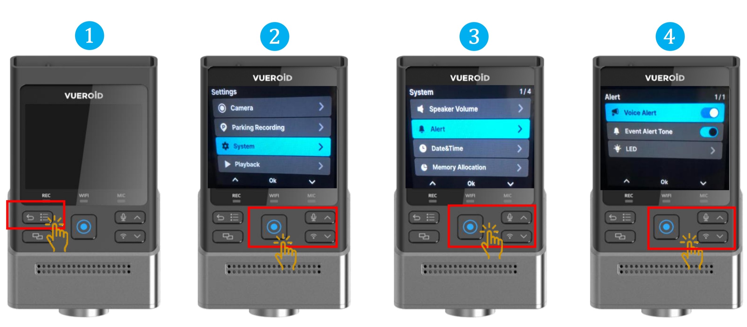 - Choose "Voice Alert" and press Manual Record / Enter button to turn On/Off.