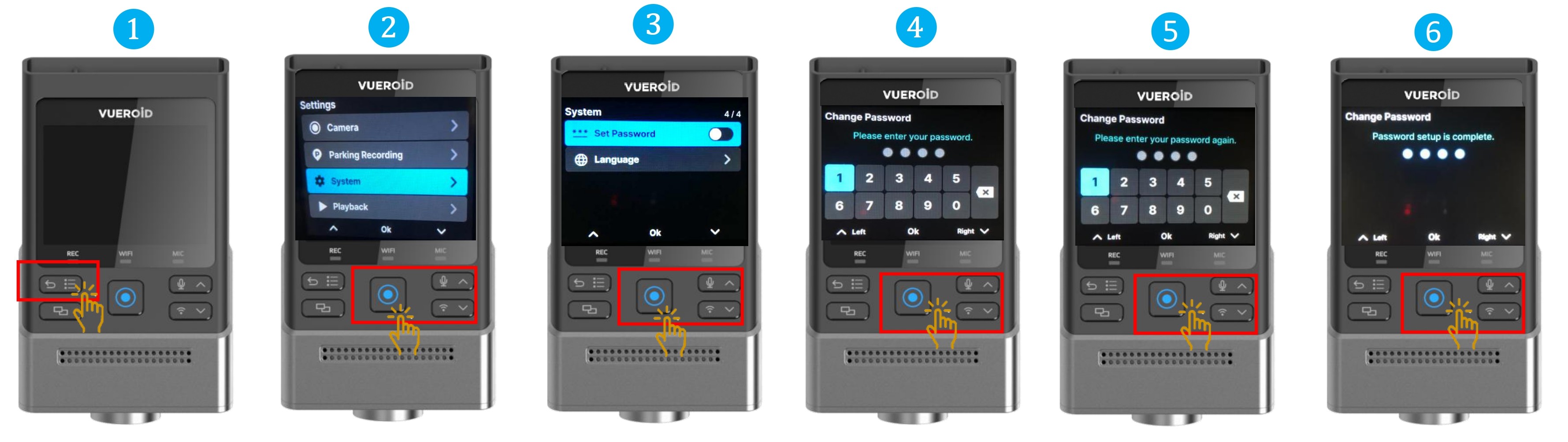 - Choose "Set Password" and press Manual Record / Enter button.