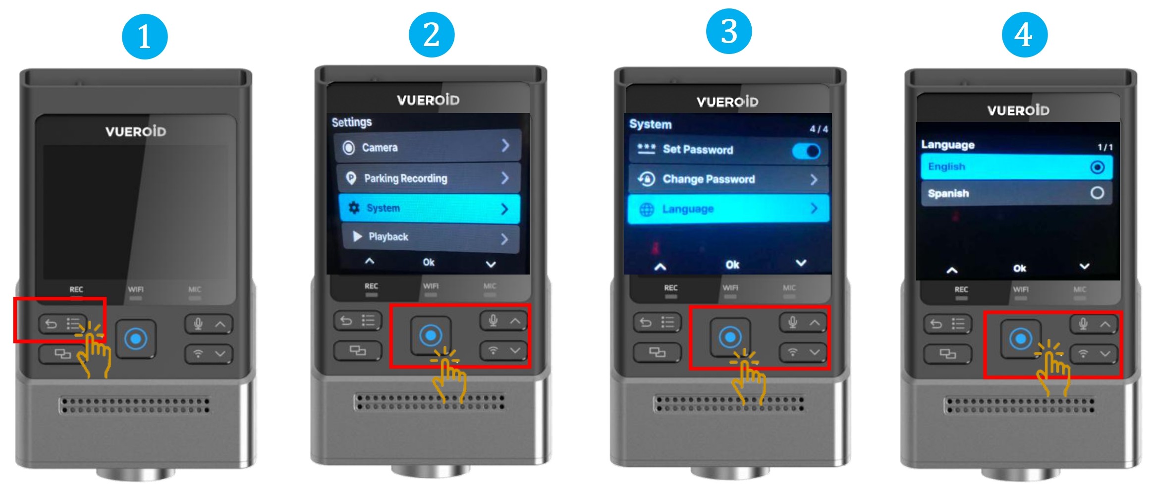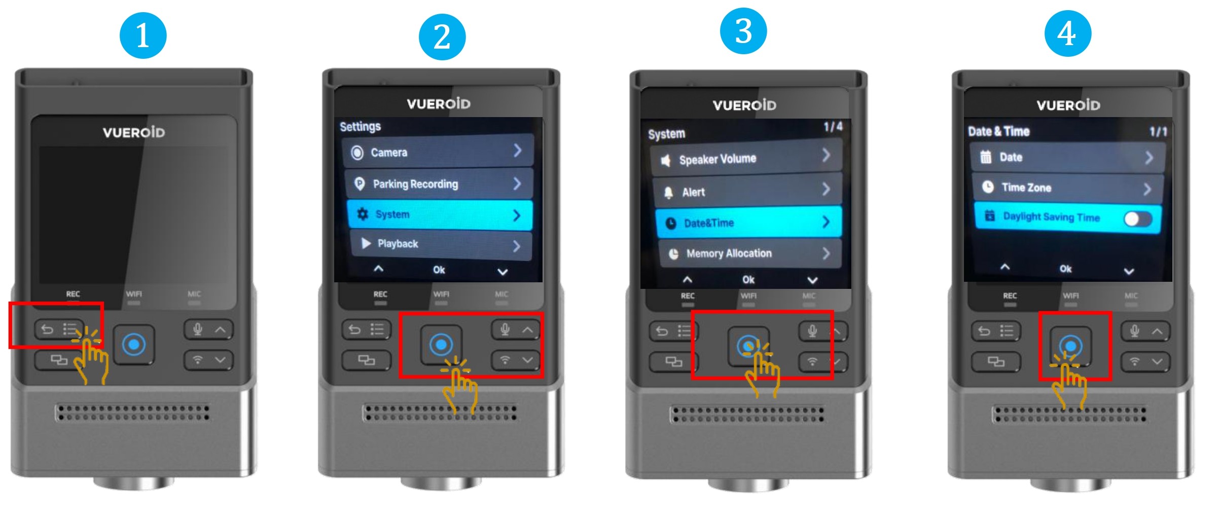 ※Factory reset - All settings and saved videos will be erased, and the device will return to its original factory condition.