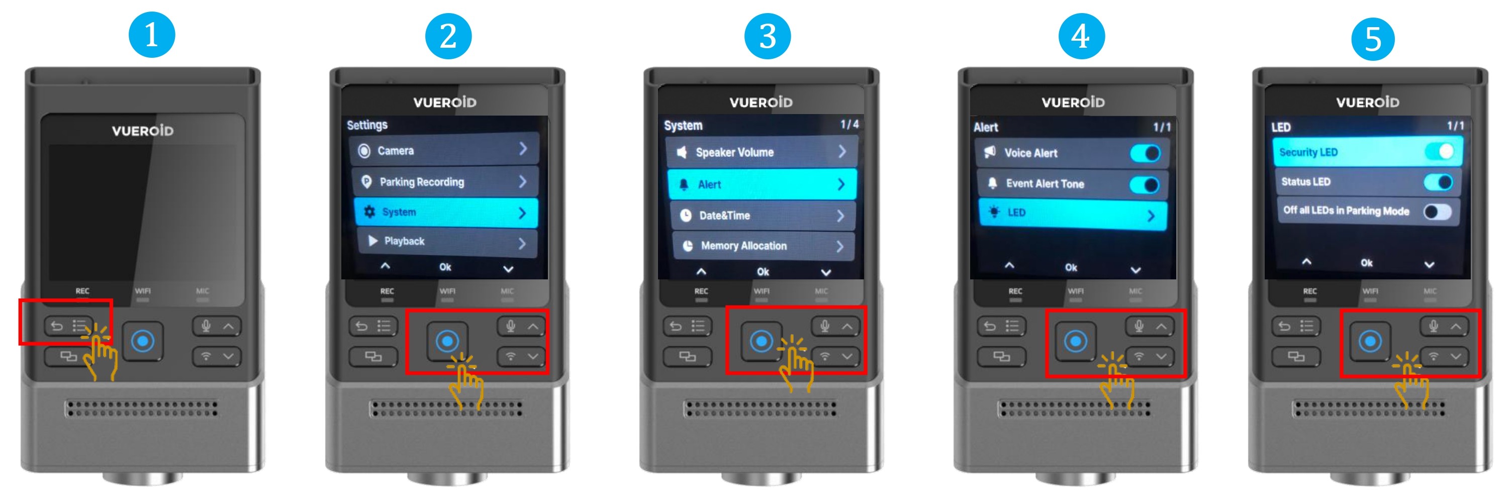 ※"Off All LEDs in Parking Mode" and press Manual Record / Enter button to turn On/Off.