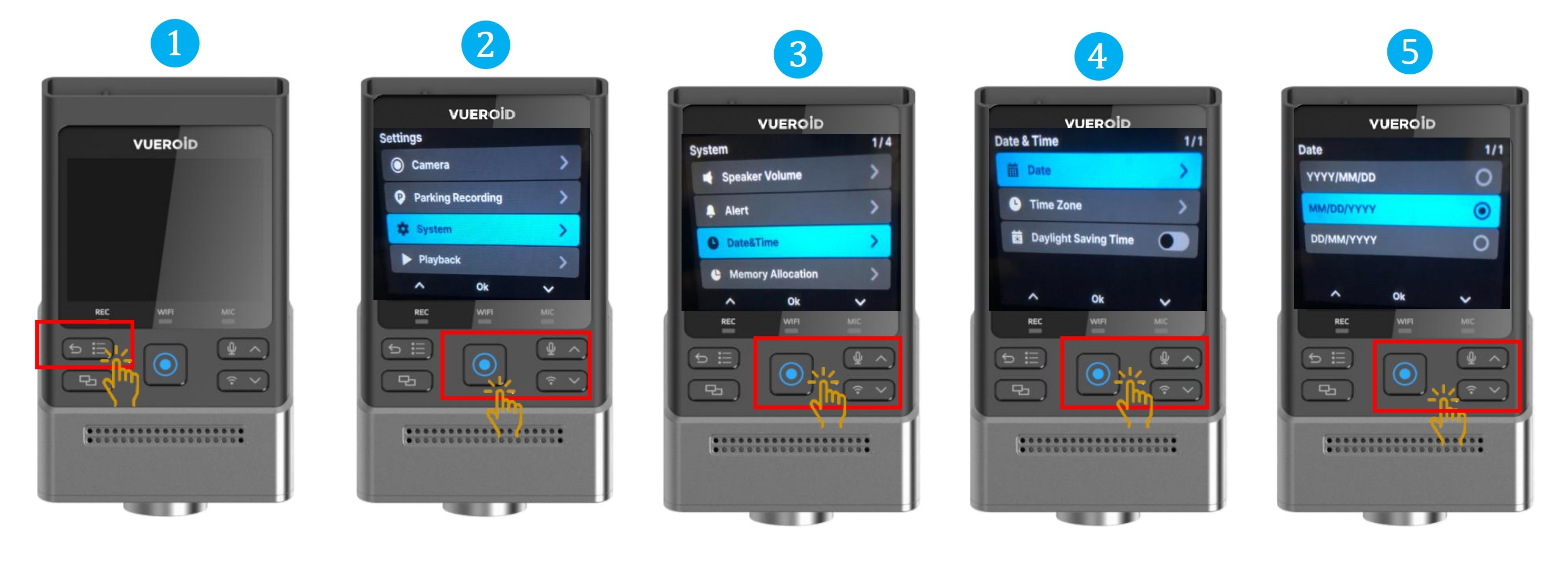- Choose "Date" and press Manual Record / Enter button.