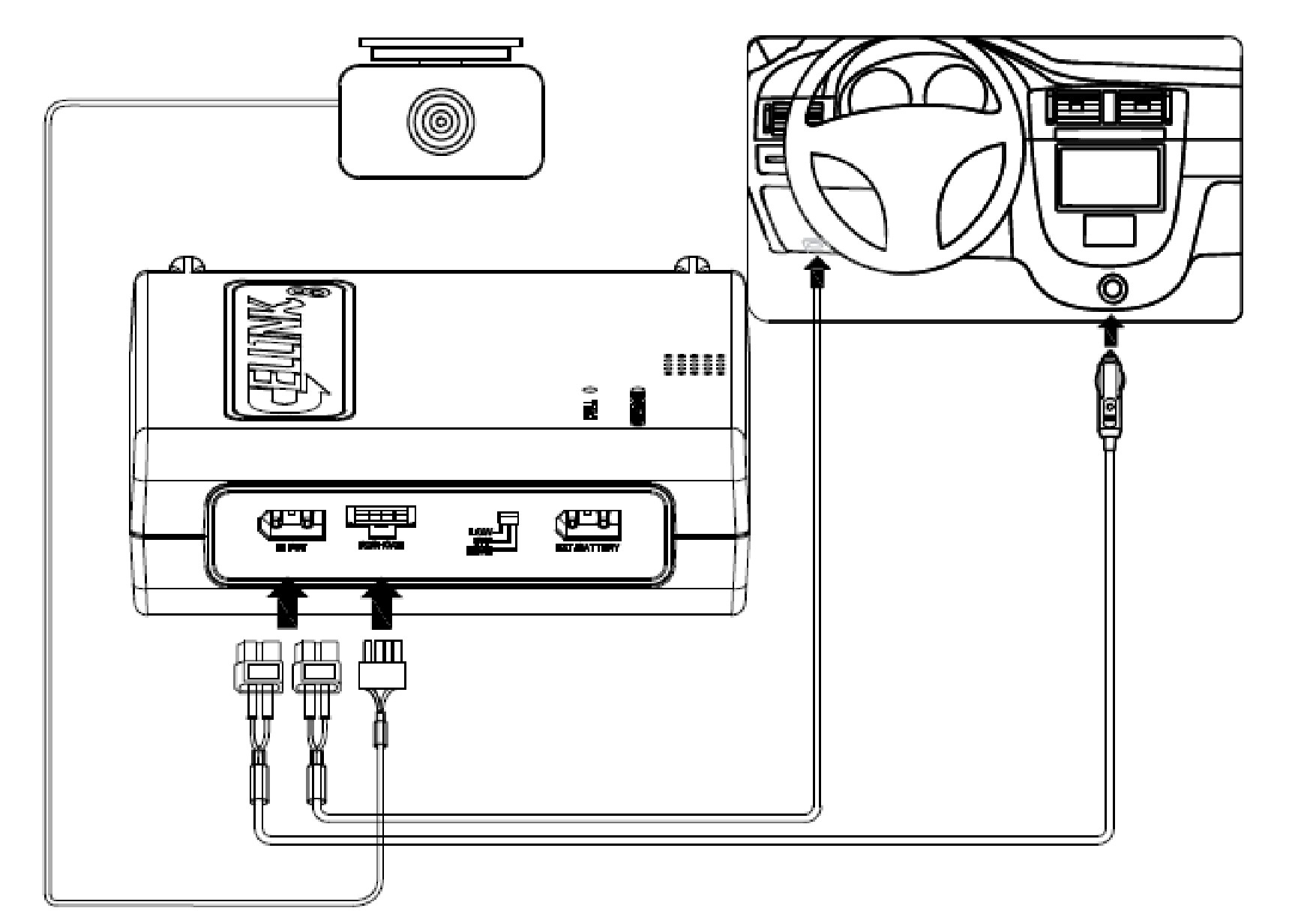 ● 1. INPUT : The charging connector for connecting to the Cigar lighter socket and ACC Power in the Fuse box.