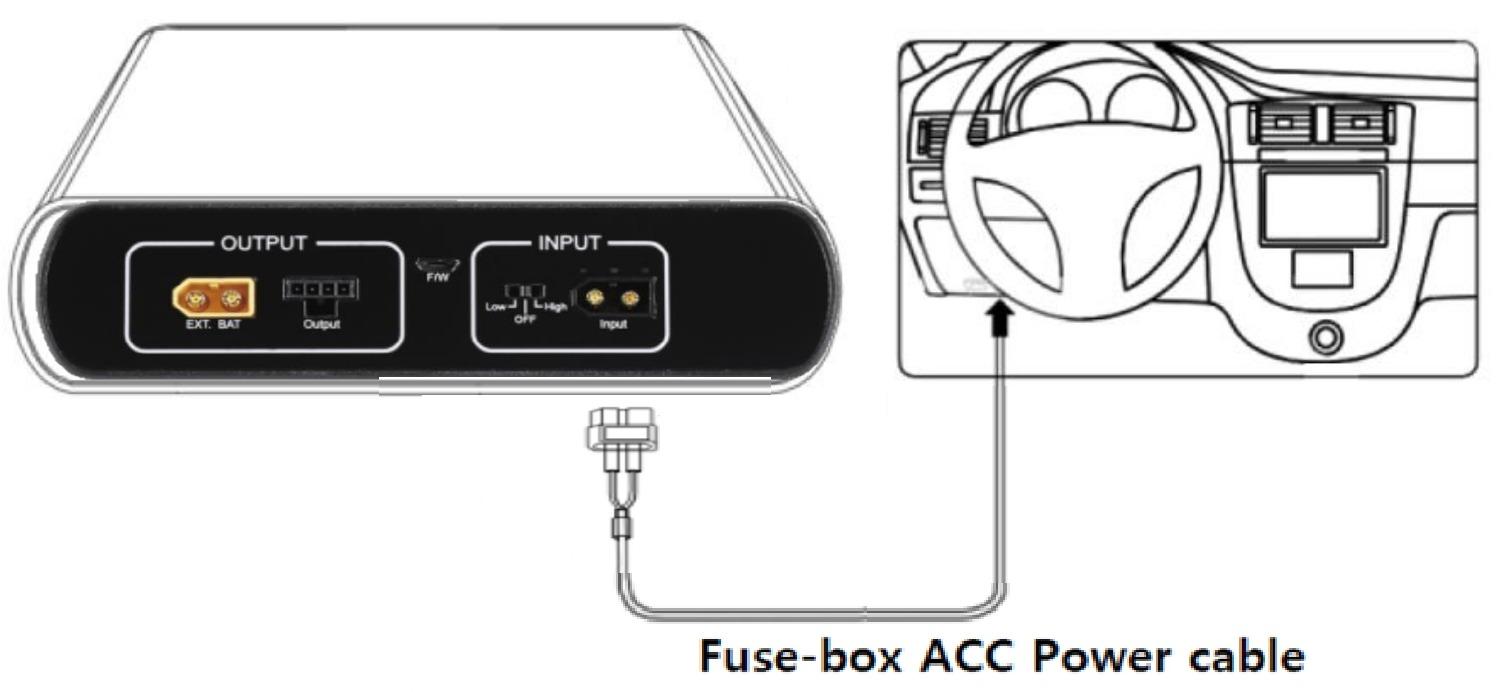 | ▷ When connected to the Fuse Box ACC power: HIGH | DC12~17V | Max. 13.5A | |||