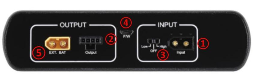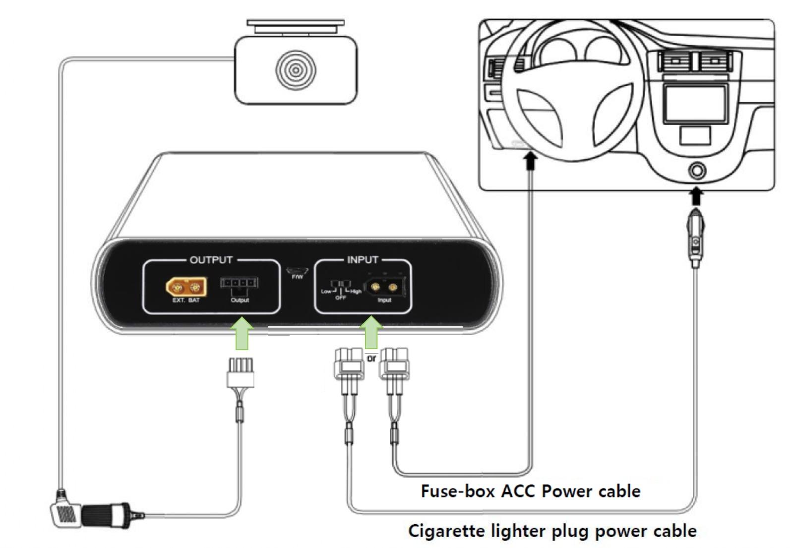 ● 2. OUTPUT : The discharging connector for connecting to the dashcam.