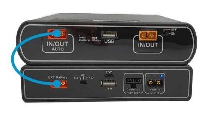 Once you plug the link cable to the IN/OUT Auto port of NEO 8+S, the system will update the total capacity (7,600 + 6,800 = 14,300 mAh) automatically.