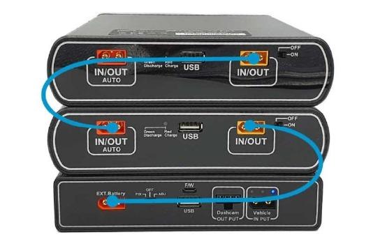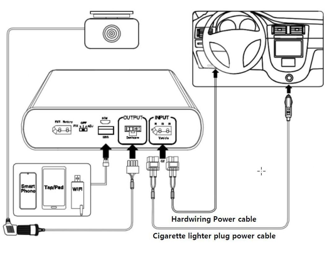 ● 2. OUTPUT : The discharging connector for connecting to the dashcam.