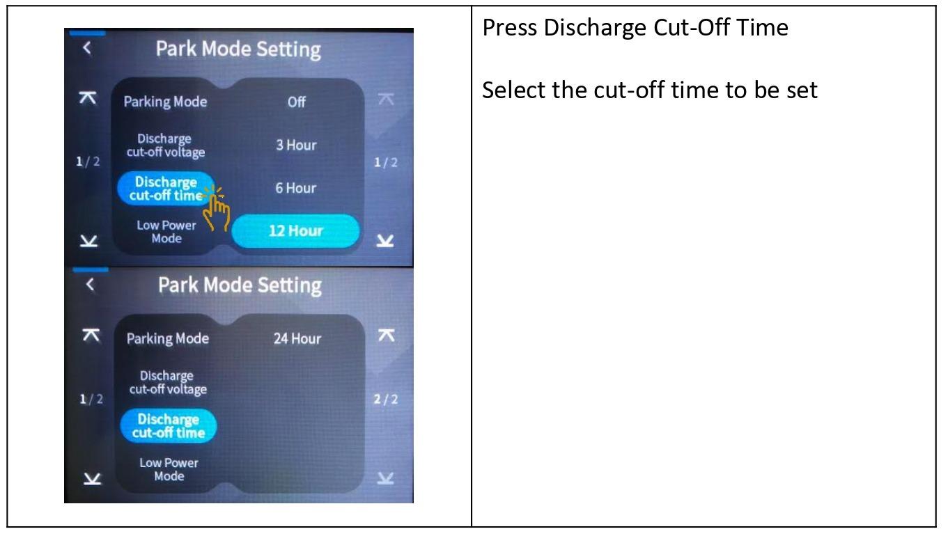Discharge Cut-Off Time allows user to choose a few pre set timer cut off options or disable the timer cut off.