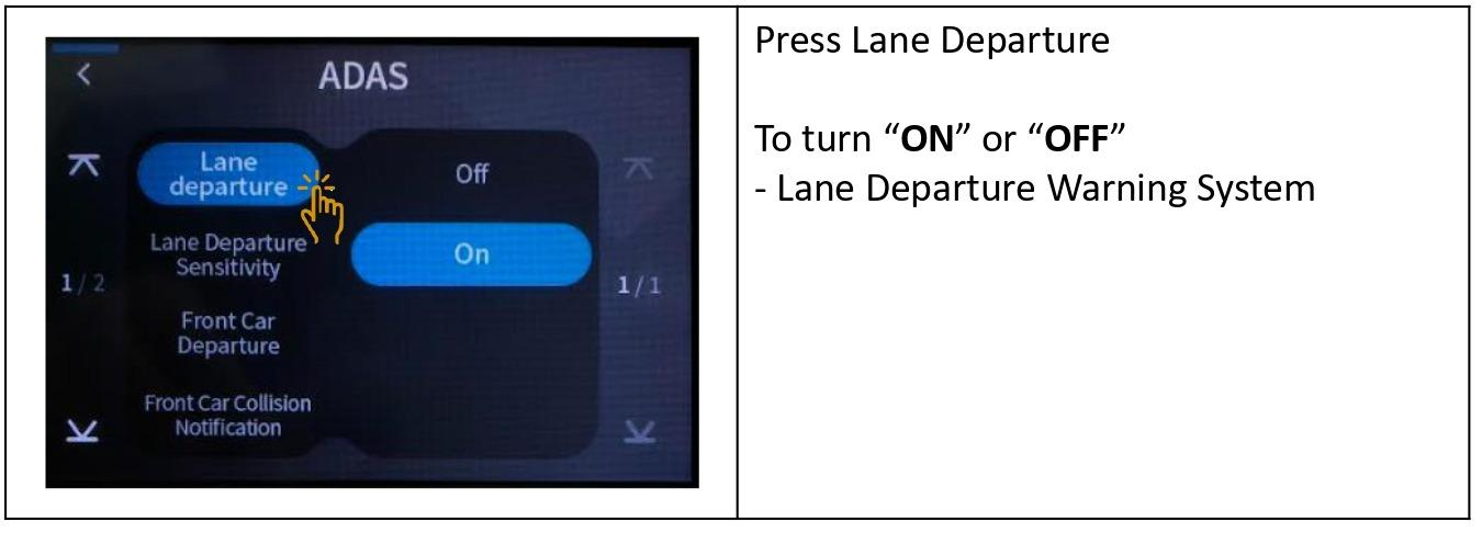 Lane Departure Warning System can be turn "ON" or "OFF".