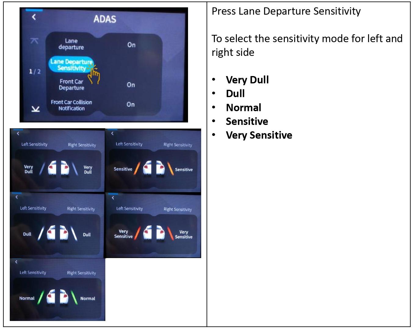 Click on Lane Departure Sensitivity (Lane Departure Warning System) to set the sensitivity sensor.
