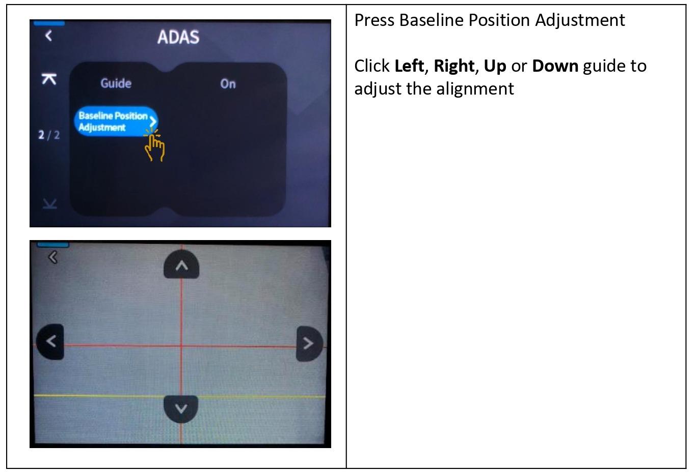 Click on Baseline Position Adjustment, to align the dashcam sensor accordingly.