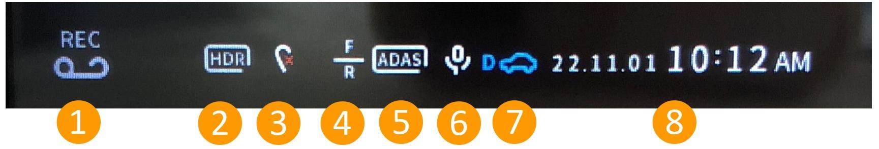 - Once D10-F2W dashcam is powered on, the main screen will appear as shown.