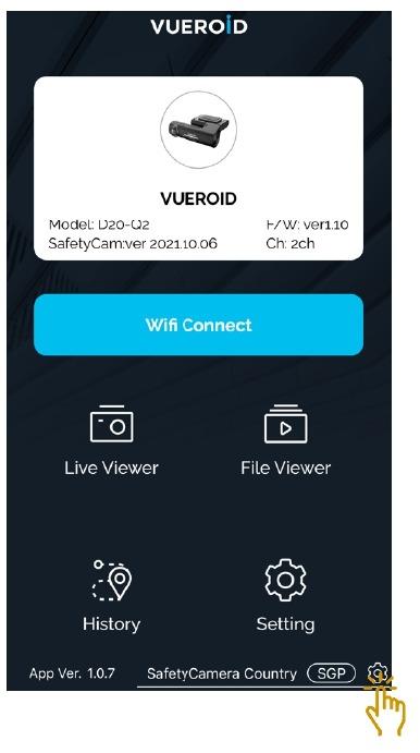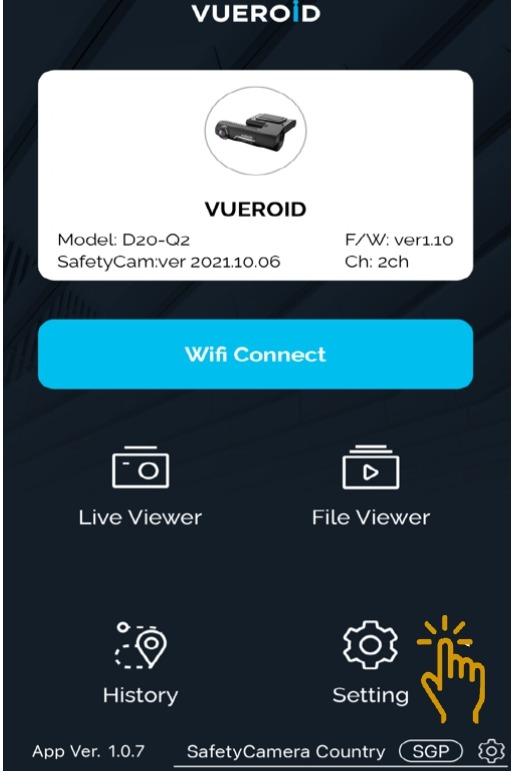 2. Click on "Setting" to choose the Safety Camera Country Setting.