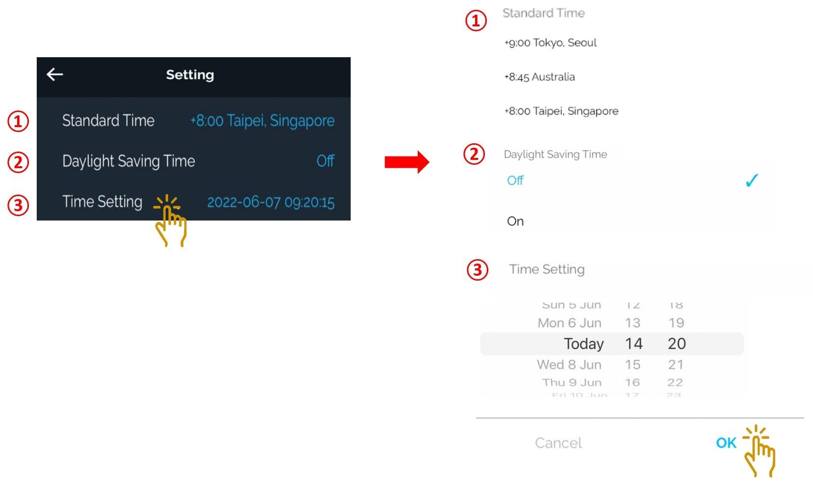 Standard Time - Time setting can be set manually or choose the correct region time zone GMT.