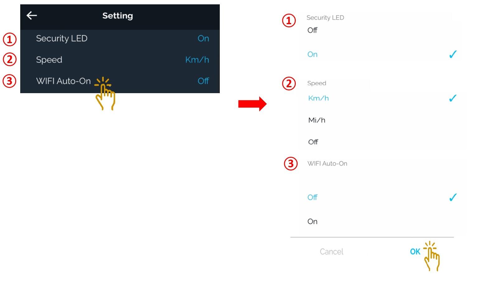 WI-FI Auto-On - Once the Wi-Fi is set to Auto ON, whenever the dashcam starts, the Wi-Fi will be set to turn on.