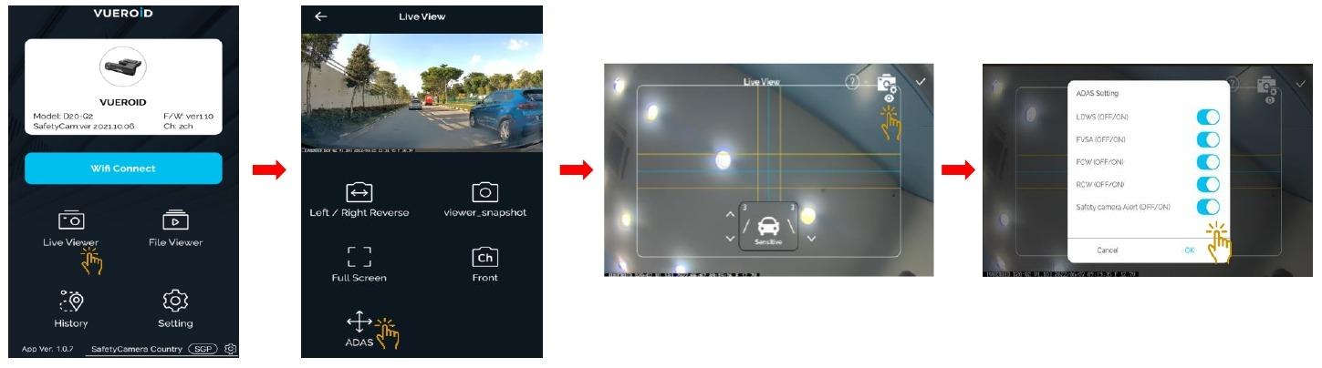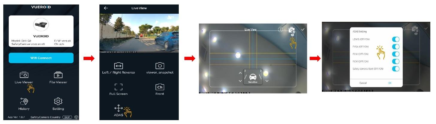 2. Go to Live Viewer then select ADAS setting to adjust the ADAS