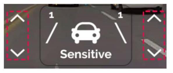 - Press Up/Down to set the warning sensitivity level from 1 to 5.